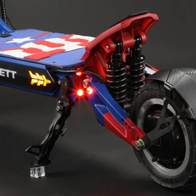 VSETT 11+ touts aggressive styling and features a bright head light and taillights, flashing brake lights, integrated turn signal lights and a colorful RGB logo on the deck side.