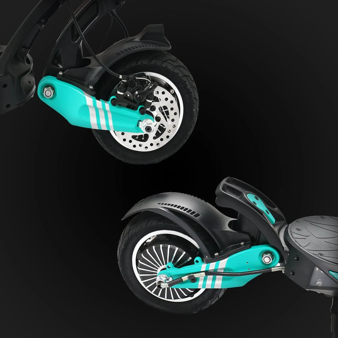 Experience the freedom and advanced performance VSETT 9+ delivers with dual motors. The dual 650 W motors accelerate up to 48-53 KM (Private Use) while the dual disk brakes bring you to a positive stop. Front and rear pneumatic tires, coupled with dual adjustable suspension, provides a smooth ride.